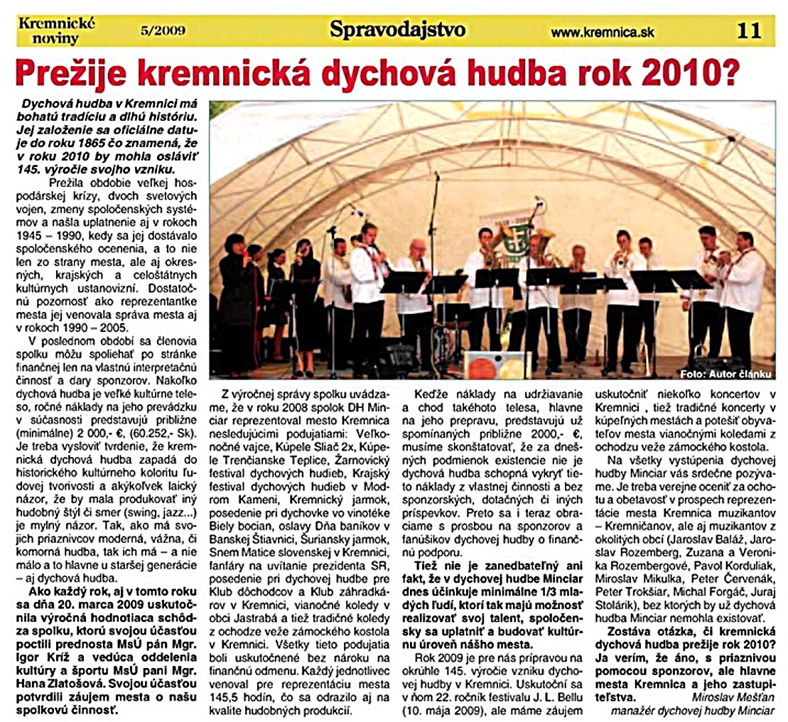Článok prevzatý z uverejnenia v Kremnických novinách 4. mája 2009