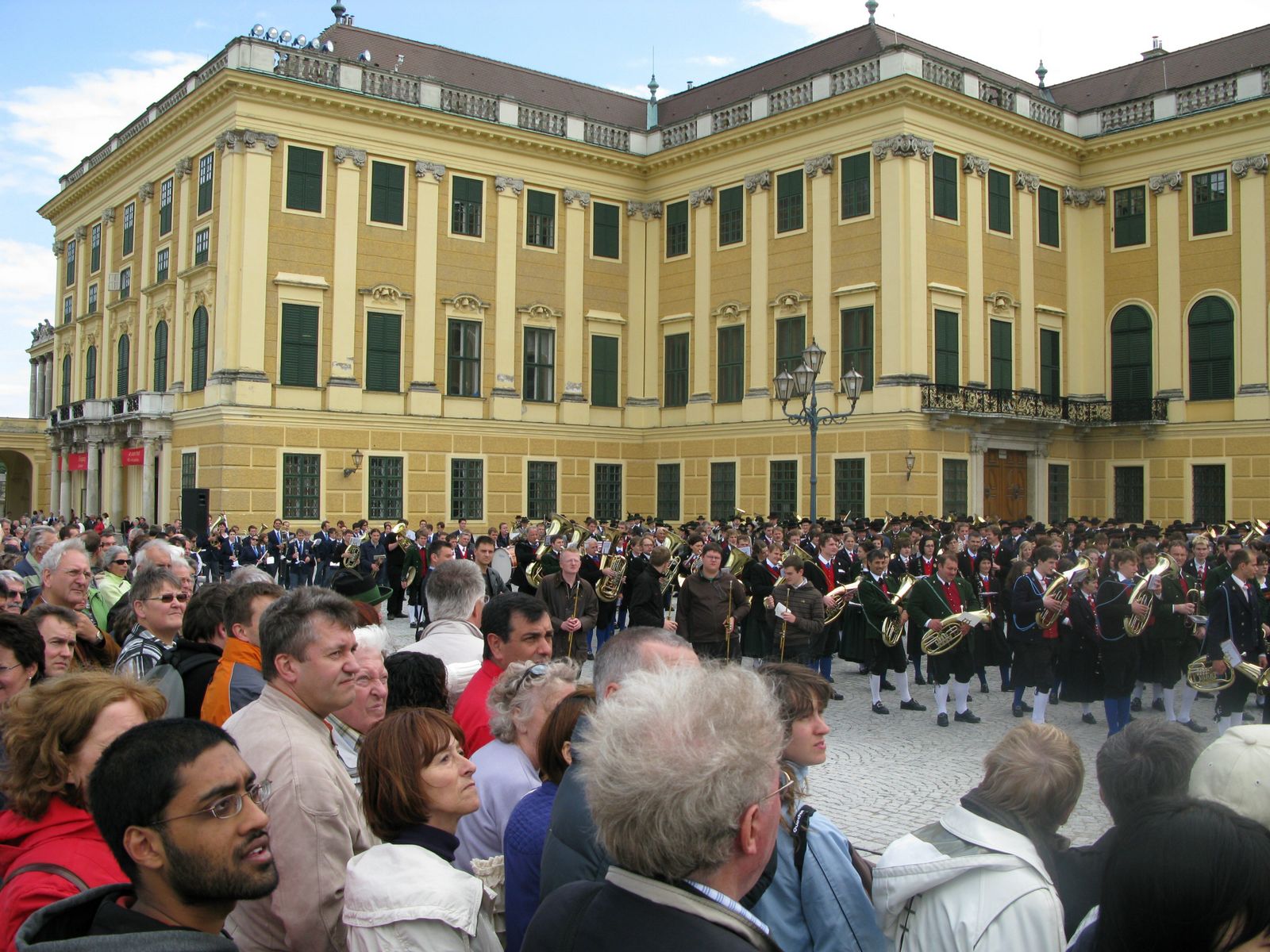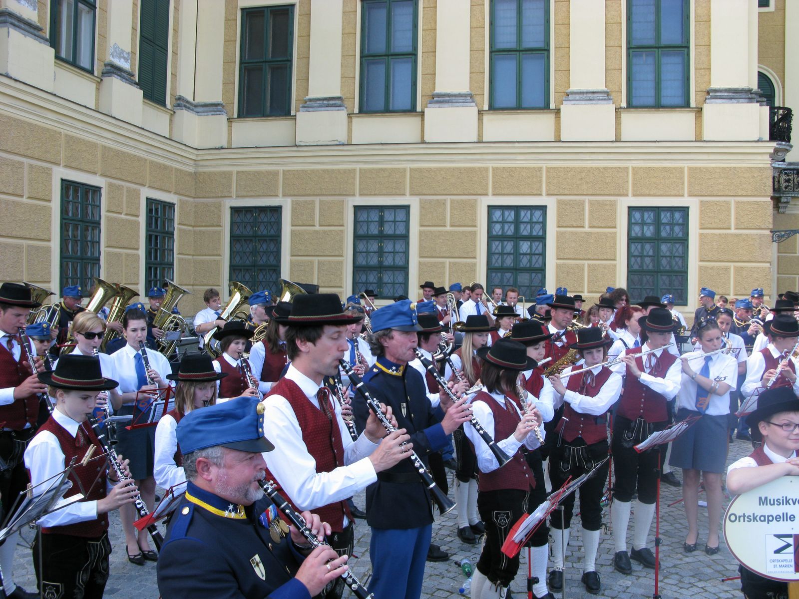 Hlavný program blasmusikfestu bol na pláne v sobotu 5. júna. Dopoludnia mali jednotlivé súbory koncerty po Viedni. Bánovčanka koncertovala na dvorene zámku Schönbrunn. Tu spoločne s mažoretkami zaujala všetkých turistov, ktorí okrem krásy záhrad mohli v danú chvíľu obdivovať i nádherné slovenské dievčatá a ich um a dokonalé ovládanie paličky. Choreografie mažoretiek na hudbu vylúdenú z nástrojov našej kapely nenechali nikoho chladného a najmä nie fotoaparáty všetkých prítomných okoloidúcich. Záver dopoludňajšieho koncertu patril všetkým trom kapelám, ktoré boli prítomné na nádvorí.