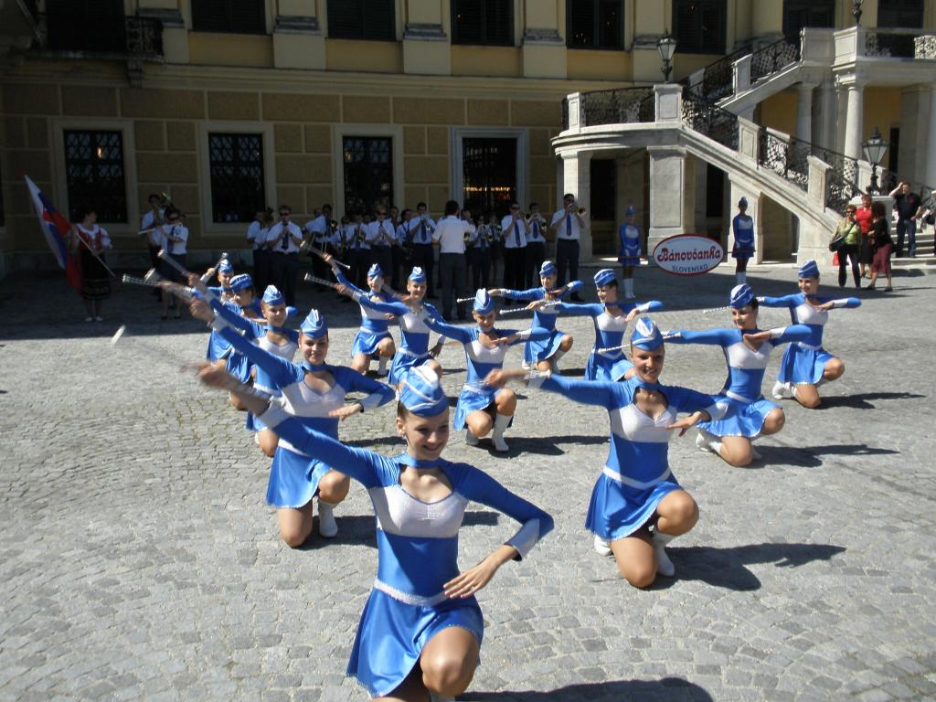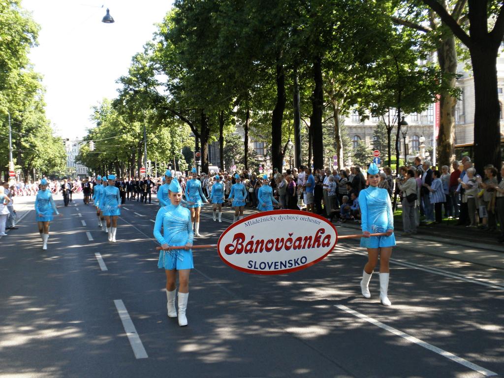 Reprezentácia Slovenska vo Viedni týmito súbormi začala v piatok 4.6.2010. Ranná cesta viedla z Bánova do Devínskej Novej Vsi. Tu sa k Bánovčanke pridala Tina a mohlo sa vyraziť. Pred samotným odchodom bola ešte krátka skúška a zosynchronizovanie choreografie a mohlo sa pokračovať v ceste do hlavného mesta Rakúska. Prvá zastávka súborov bola v prekrásnych záhradách v Schönbrunne, ktoré preslávil známy film o cisárovnej Sisi. Tu sa konala skúška na záverečný koncert všetkých zúčastnených orchestrov. Asi dvojhodinová skúška preverila prvýkrát všetky zúčastnené orchestre. Pre rakúske kapely potom nasledovala súťaž v pochodovaní. Všetky tieto postupne pochodovali nádvorím Schönbrunnu a ich výkony si podrobne všímala prítomná porota.