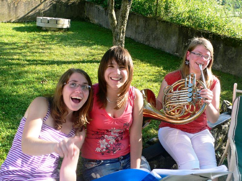 V ďalších dňoch sme už pokračovali v plnom nasadení. Pracovali sme aj individuálne po sekciách, kde sme si mohli navzájom vymeniť svoje zručnosti a schopnosti v hre na jednotlivé dychové nástroje, popracovať s výrazom, prejavom, zosúladením, a takto načerpať nové skúsenosti a obohatiť svoje schopnosti. No a aký by to bol orchester bez speváčok? Tohto ročníka sa zúčastnili dve mladé, šarmantné speváčky Janka a Gabika, s ktorými sme spoločne, ako jeden veľký orchester, nacvičovali hudobný program, ktorý uvedieme počas nášho druhého stretnutia v podobe koncertíkov po okolí a na celoslovenskom Dychfeste vo Vištuku.