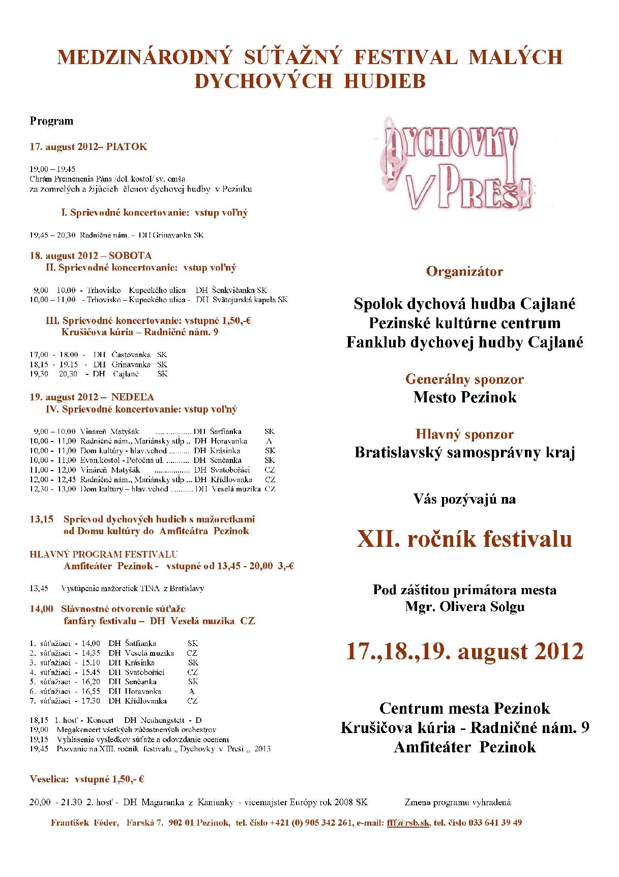 Pozvánka a program festivalu "Dychovky v Preši 20121 na stiahnutie.