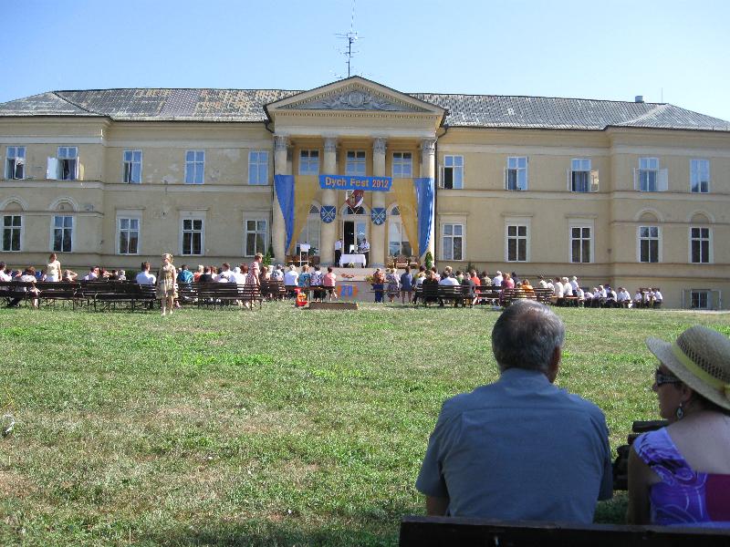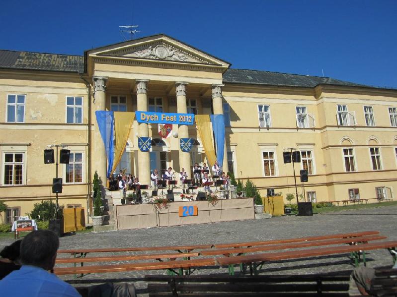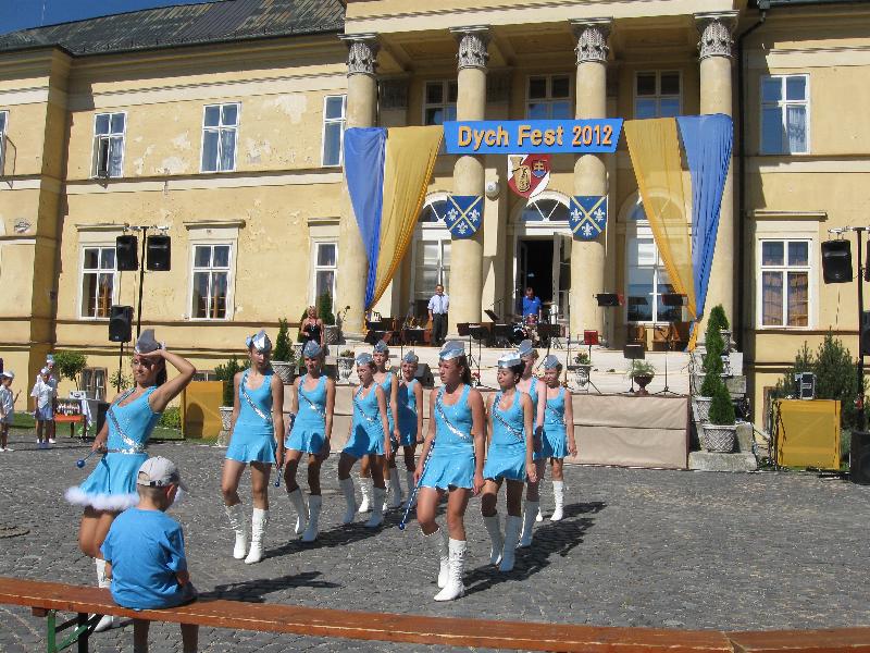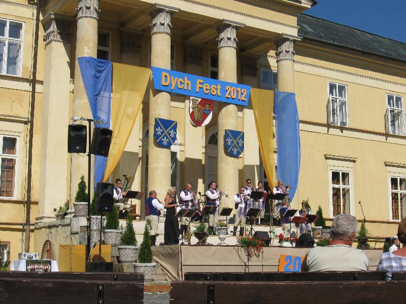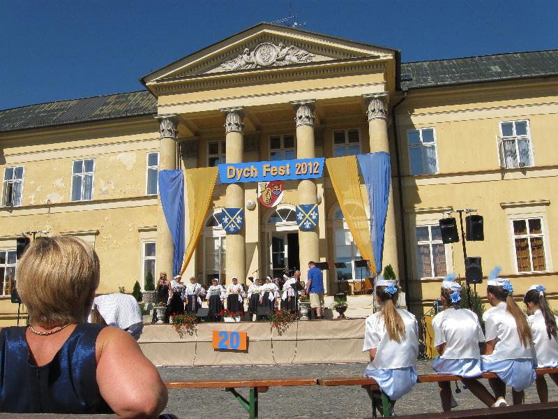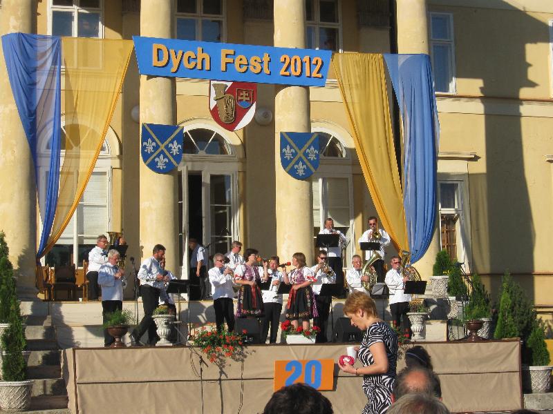Popoludní sa stretli DH Považská Veselka, Lapášanka a Karpatská kapela pred obecným úradom, aby spoločne zahájili slávnostný pochod do kaštieľa, na čele s mažoretkami z Hlohovca. Po príchode na nádvorie, krátkych uvítacích ceremoniáloch a zahájení druhého dňa Dychfestu na pódiu ako prvá vystúpila ženská spevácka skupina „Dolnokrupanka“, ktorú vedie pán Alojz Konečný.
