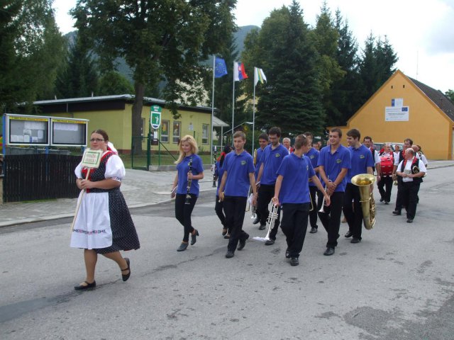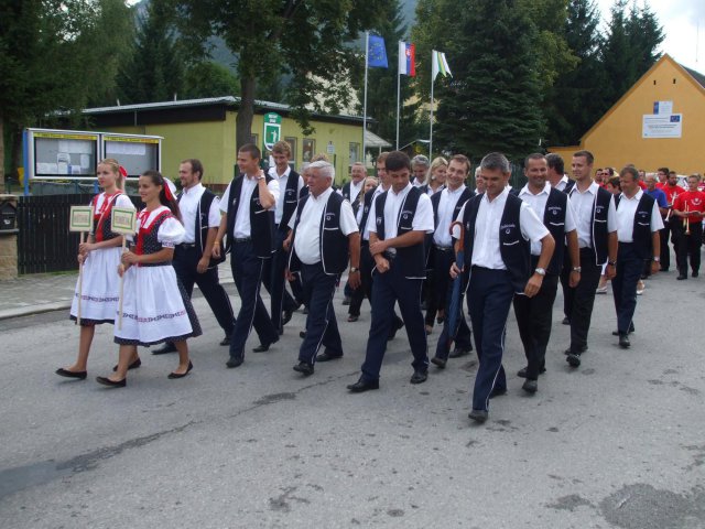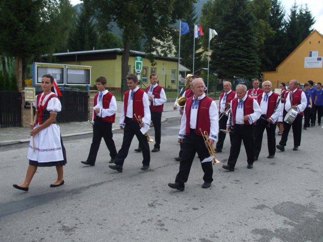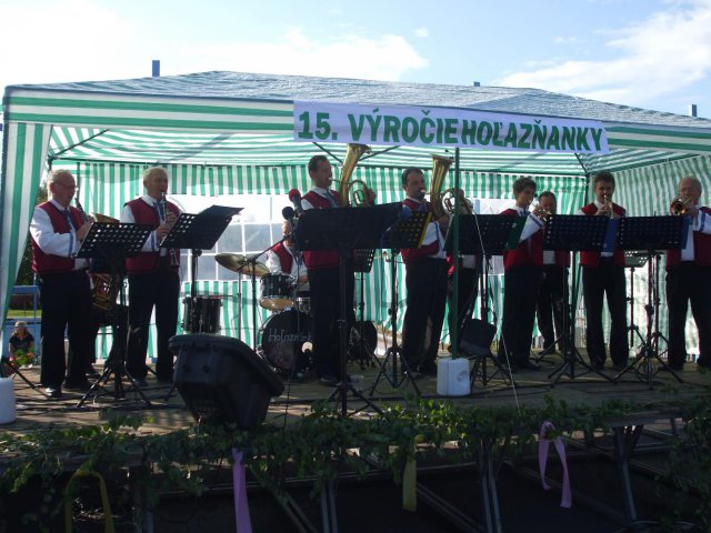 PLEVNÍK-DRIENOVÉ. Oslavy 15. výročia dychovej hudby Hoľazňanka a hody v obci začali slávnostnou svätou omšou. Pokračovali potom sprievodom účinkujúcich do športového areálu. Na oslavách sa zúčastnilo sedem ďalších dychových súborov. Nechýbalo vystúpenie mažoretiek, ktoré už akosi k dychovkám patrí. Vystupovali aj deti z folklórneho súboru Dúbravček a ľudová hudba Dúbravienka z Plevníka-Drienového.