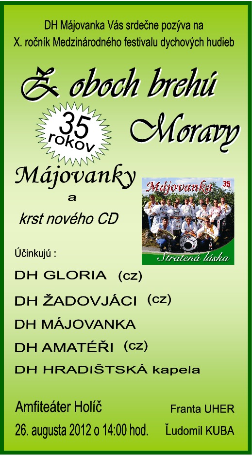 Je pekný augustový deň 26.8.2012 a dnes sa koná v Holíči jubilejný 10. ročník festivalu „Z oboch brehú Moravy“ ktorý úspešne organizuje DH Májovanka, ktorá je v tomto roku už kapelou s 35. ročnou tradíciou. Ako bonus pre poslucháčov a samozrejme aj pre nás má pripravené nové natočené CD s názvom „Stratená láska“ ktoré chce pri tomto výročí uviesť do života.