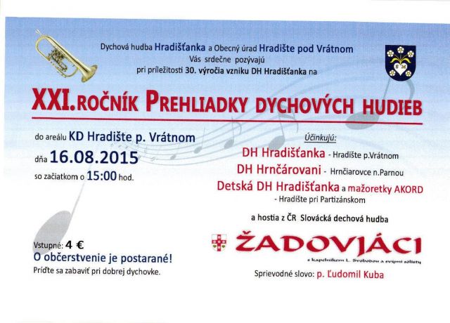 XXI.ročník Prehliadka dychových hudieb v Hradišti pod Vrátnom